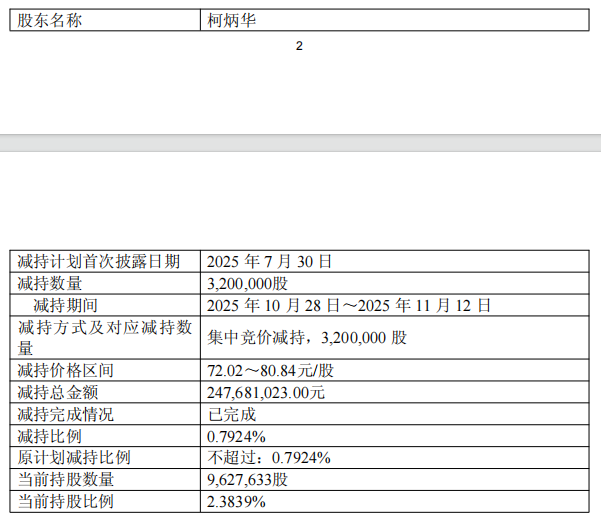 中国经济网北京11月13日讯:科博达(603786.sh)昨晚披露股本。上述股份来源为公司首次公开发行股票前获得的股份,已于2022年10月17日解除限售并上市流通。根据减持计划,因自身资金需要,柯秉华拟在减持计划公告之日起15个交易日后(即2025年8月21日至11月)后3个月内,通过集中竞价交易或大宗交易方式减持股份。 2025 年 20 日)。近日,该公司收到柯秉华的“通知函”。截至2025年11月12日,柯秉华通过集中竞价交易减持320万股,占公司股份0.7924%。s 总股本。本次减持计划已完成。柯秉华减持期限为2025年10月28日至11月12日,减持价格区间为72.02元/股至80.84元/股,减持总额为247,681,023.00元。科博达于2019年10月15日在上海证券交易所主板挂牌上市,股票数量为4010万股,发行价格为26.89元/股,保荐机构为中金公司。科博达控股股东为科博达控股,实际控制人为柯贵华、柯秉华兄弟。其中,柯桂华为中国公民,在境外无永久居留权。柯秉华是中国公民,拥有香港永久居留权。两人合计控制公司89.12%的股份。科博达本次募集资金总额10.78亿元,发行费用5856.73万元,募集资金净额10.20亿元阿安。科博达本次募集资金中,6.7亿元将用于浙江科博达实业有限公司主导产品生产基地扩建项目,1.7亿元用于科博达科技有限公司新能源汽车电子研发中心项目,1.83亿元用于流动资金供应。