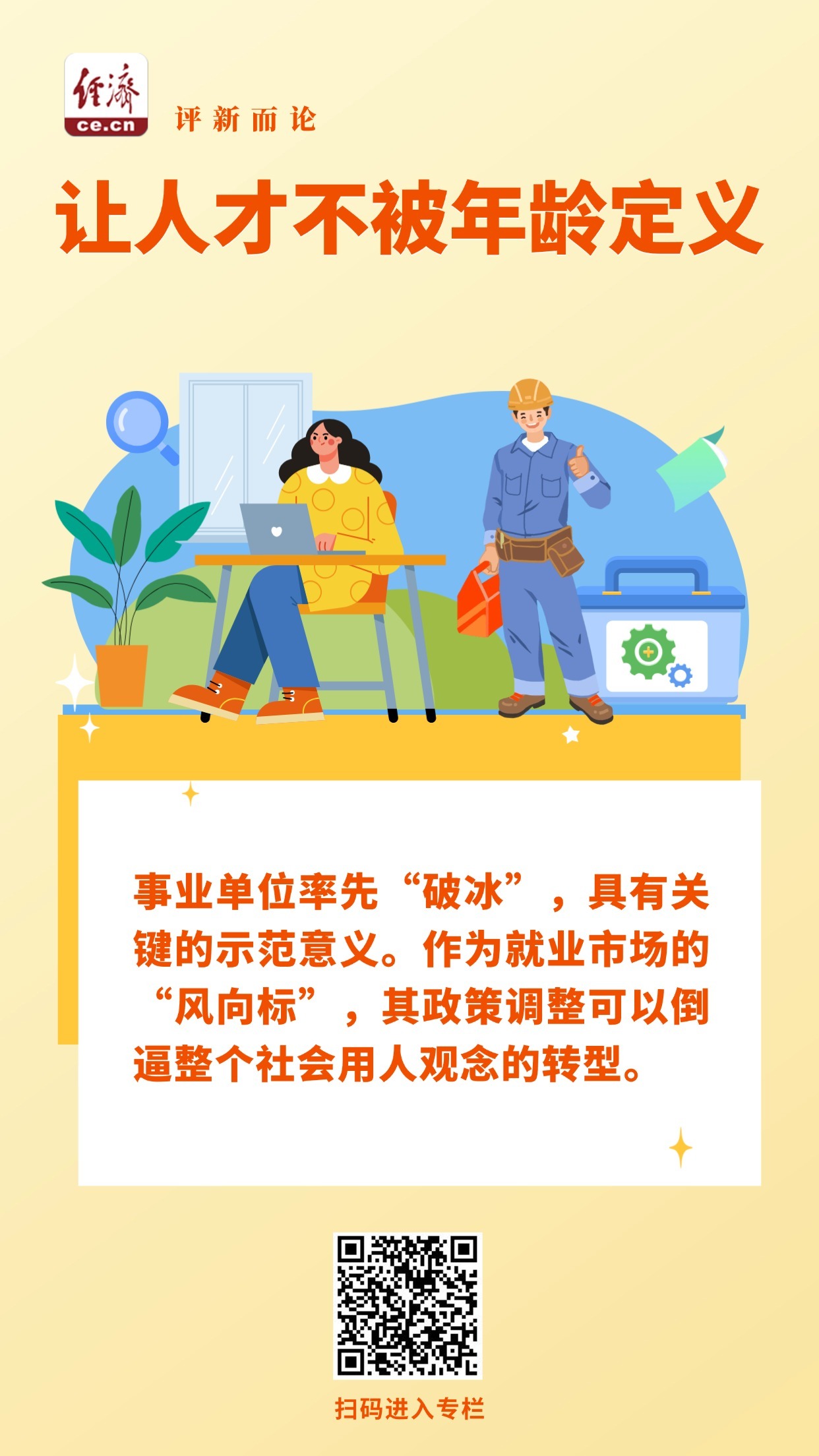 近期,四川眉山、遂宁等地“破局”,将事业单位本科生年龄限制放宽至38岁;此前,山东、贵州等地区迈出了更大一步,直接将部分岗位年龄限制放宽至45岁。 2024年以来,多地事业单位招聘的这一波年龄调整,逐渐拉高了“35岁职业生死线”的门槛。这并不是简单的数字变化,而是对人才价值的理性回归,对“唯理论”的有力修正。 “35岁”年龄门槛“在当前劳动力市场的现实中早已受到重视。中央财经大学人力资本与劳动经济研究中心发布的数据显示,经济学显示,我国劳动力平均年龄已达39.72岁,35岁以上劳动人口比例高达67.1%。老一辈职场经验丰富,既有扎实的专业技能,又有成熟的实践智慧。示例:在医疗岗位上,他们更了解患者与患者沟通的适当性;在对当地人的管理上,他们更善于解决复杂的矛盾——这些积累是年轻从业者短时间内无法比拟的优势。以往“一刀切”的年龄限制不存在疑虑,挡住了大批正值壮年的人才,造成了懒惰,浪费了宝贵的人力资源。公共机构带头“破冰”,在示范中发挥着核心作用。作为就业市场的“风向标”,其政策调整可以倒逼全社会工作观念的转变。采取统一前以广东省事业单位招录为例,2024年,35岁至40岁的报考人员比例从3.2%跃升至8.5%,医疗卫生岗位老年报考人数增加217%。这些数据清楚地印证了老年人才市场巨大的供需缺口,也说明“看能力不看年龄”的招聘导向不仅满足了用人单位的需求,也符合了求职者的期望,完全符合国家消除年龄歧视、促进高质量工作的政策导向。当然,解除年龄限制并不能阻止“松绑”。我们还需要继续努力,弥补我们的不足。目前,年龄放宽大多集中在专业技术岗位,而管理岗位的年龄限制并没有根本改变,普通劳动者很难享受政策。cy的股息。未来,要进一步建立以技能和业绩为主的客观评价体系,扫除老员工晋升道路上的隐形障碍,真正让年龄让位于能力,让各个年龄段的员工都有公平竞争的机会和向上晋升的空间。 35岁从来不是一项技能的“保质期”,50岁也不应该是职场的“终点线”。事业单位放宽招聘年龄限制,是“人尽其才”理念的明确落实。随着最新公告的发布,2026年国考报名年龄正式放宽,这无疑发出了明确的政策信号。当年龄不再成为奋斗的“障碍”,当每个劳动者都能找到发挥自己力量的舞台时,必将为社会发展注入更长久、更丰富的活力。经济网评论与理论频道开放投稿。原创评论和理论文章可发送至CEPL#ce.cn(#已改为@)。详情请见经济日报中国经济网评论理论频道征文。