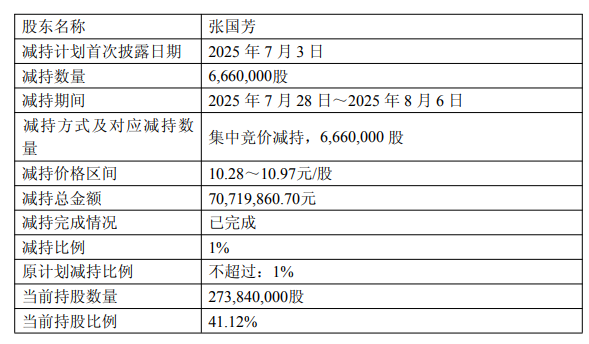 中国经济网络北京,8月7日,Guofang Group(601086.SH)揭示了分享计划的完成以及减少股东控制的结果,昨晚实际上是压抑和董事长。它表明,该公司发布了“宣布共享股东控制计划的消息,实际上是在2025年7月3日进行压制和董事长。”从2025年7月28日至2025年8月6日,张·古芬(Zhang Guofang)由公司的股东控制并实际控制,减少了他在公司份额中通过集中交易的竞标中的6,660,000股份额,提供了公司共享资本总额的1%;扣除后,张瓜芬目前持有该公司273,840,000股,股权比率为41.12%。减少共享的总额为70,719,860.70元。张H该公司的实际压制UAHI通过集中投标交易减少了他的公司共享2,987,000股,占公司股票总资本的0.45%;扣除后,张华目目前持有40,050,000家公司共享,股权比率为6.01%。减少共享的总额为30,680,815.00元。计算后,张瓜芬(Zhang Guofang)和张华(Zhang Huiya)释放了1.01亿元人民币,以减少这一共享。最近,该公司收到了Zhang Guofang和Zhang Huyang发行的“股东减少计划的通知完成和共享扣除结果”。实施了张瓜芬和张黄的股票的共享。在实施此共享计划之前,股东控制和实际控制器之一张瓜芬持有公司280,500,000股不可阻挡的股份,并持有有限循环的股份共享,持有同伴的总资本y分享。上述股票来自公司首次公开报价之前获得的股票。在实施该共享计划之前,股东控制的联合演员兼董事长张华将持有43,037,000股不受控制的循环流通股和0股份的股票,股票的股票为43,037,000股,分别为43,037,000,占公司总额为6.46%的公司。上述股票来自公司IPO之前获得的股票,并由个人在2021年获得集中式招标而获得。张瓜芬(Zhang Guofang)和张楚凡(Zhang Chunfang)将结婚。张黄(Zhang Huiyang)是张瓜芬(Zhang Guofang)和张楚凡(Zhang Chunfang)的儿子。张瓜芬(Zhang Guofang)和张楚凡(Zhang Chunfang)将结婚。张华雅(Zhang Huiya)是张瓜芬(Zhang Guofang)和张楚凡(Zhang Chunfang)的女儿。根据2024年年度Guofang Group报告,该公司的实际控制器是Zhang Guofang和Zhang Chunfang。 Guofang Group于7月22日在股东控制份额和实际控制的承诺的释放表明,在公告披露之日,张·古芬(Zhang Guofang),张·楚凡(Zhang Chunfang),张华(Zhang Hui)和张华(Zhang Huiyang)总共持有75.52%;在承诺筹集了9818万股股票后,合计的 - 诺言,提供其股票。占股份比率的19.52%,占公司股票总资本的14.74%。